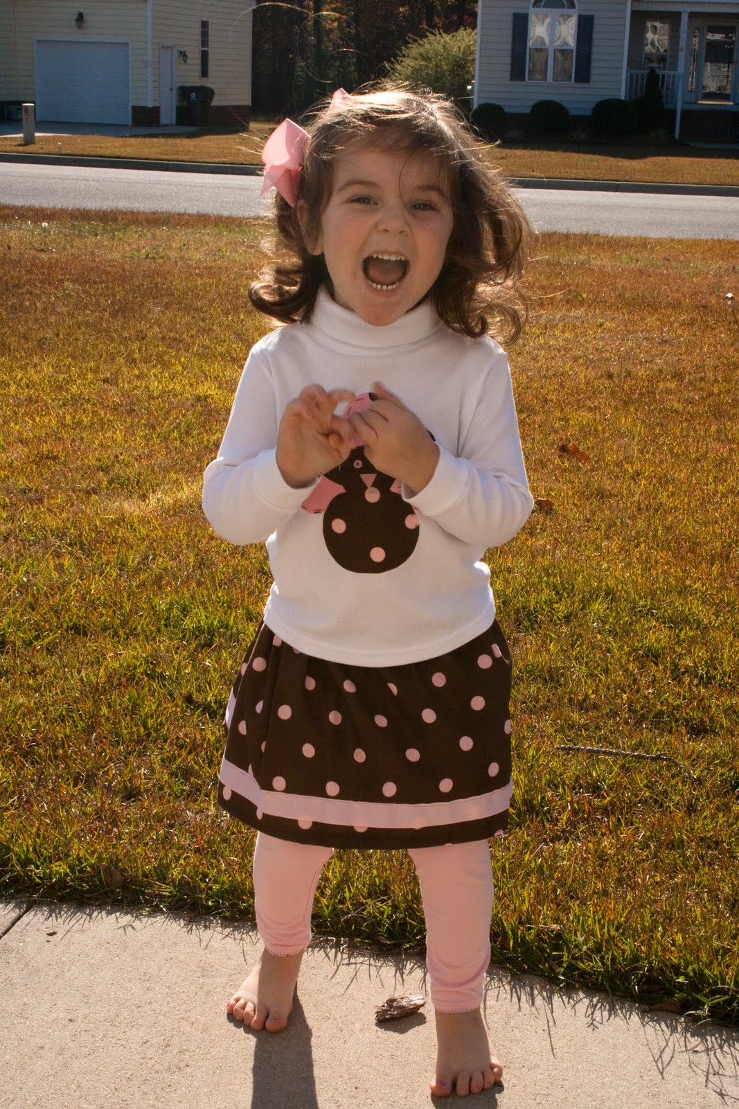 A little over a year ago I got into appliquéing shirts and onsies for my girls. Honestly it was the cheapest way to have them match. I am slightly addicted. Anyway, this is what I made them for Thanksgiving. I started with the shirt and realized I had a ton of fabric leftover....so I made the skirt too!